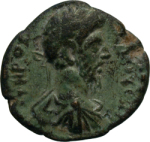 laureate-headed bust of Lucius Verus wearing cuirass and paludamentum, right