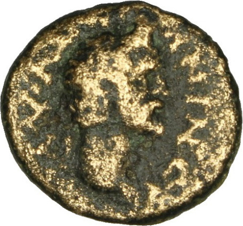 laureate head of Antoninus Pius, right