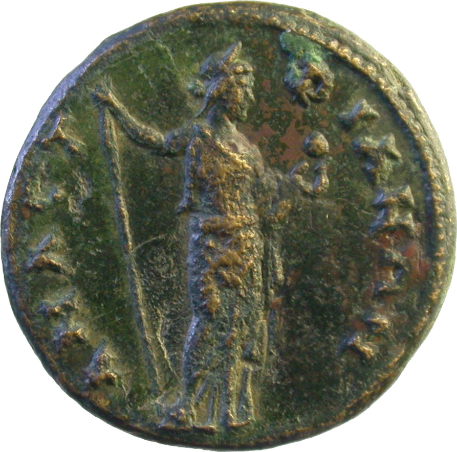 laureate head of Antoninus Pius, right
