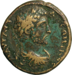 laureate-headed bust of Marcus Aurelius ( beard) wearing cuirass and paludamentum, right
