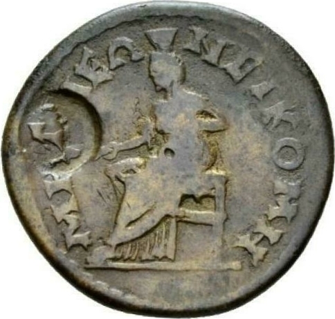 Rec 109, pl. XCI.25 (rev.), on rev., tympanum not very clear, thus Rec interpreted the rev. figure as 'Homonoia' |