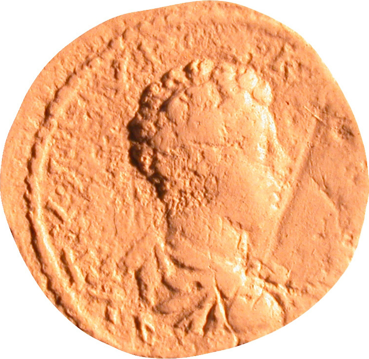 bare-headed bust of Commodus (youthful) wearing paludamentum, right