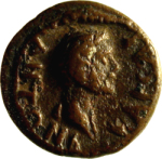 bare head of Antoninus Pius with traces of drapery, right