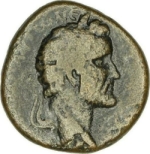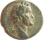 laureate head of Antoninus Pius, right