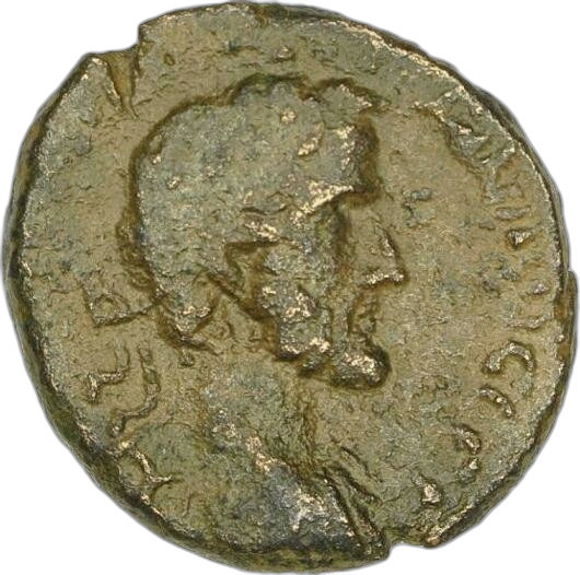 laureate head of Antoninus Pius, right