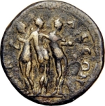 the three Charites, the left one with ears of corn(?), the right one with apple(?)