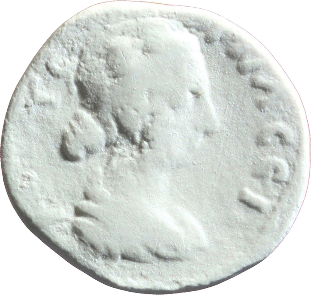 draped bust of Faustina II, right