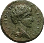 bare-headed bust of Commodus (youthful) wearing paludamentum, right