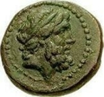diademed head of Zeus, right