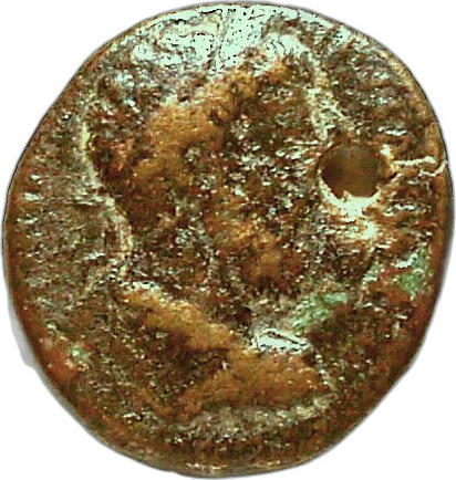 L: BMC 87, pierced, 11.72g, with additional reverse legend variation: COL PIMA(sic) [ ]VG CAESAREAE |