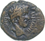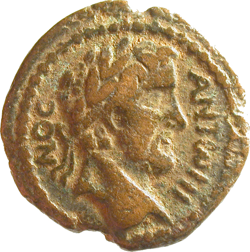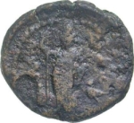 turreted Tyche standing, left, holding standard and aplustre; to right, dove standing, left