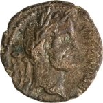 turreted Tyche standing, left, holding standard and aplustre; (to left, uncertain object thin high altar or small statue?); to right, dove standing, left