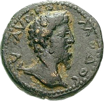 bare head of Commodus, right