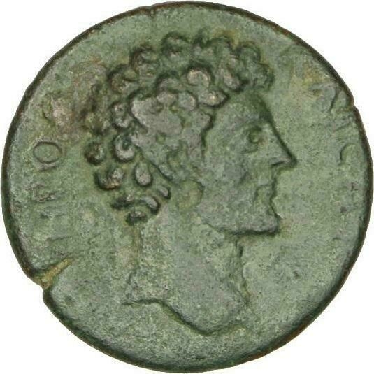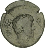 bare head of Marcus Aurelius (lightly bearded - short beard), right