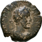 male bearded half-figure (river-god in water?) advancing, facing, head, left, holding wreath and cornucopia |
