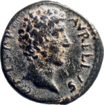 figure (Fortuna/Tyche or Genius) standing, facing, head, left, emptying cornucopia, holding long sceptre