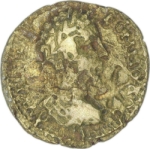 laureate-headed bust of Commodus (long beard) wearing cuirass and paludamentum, right, seen from rear