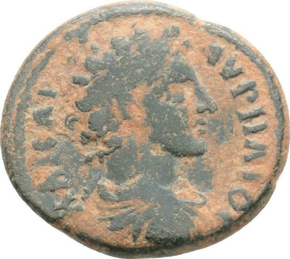 bare-headed bust of Marcus Aurelius (lightly bearded - short beard) wearing cuirass and paludamentum, right