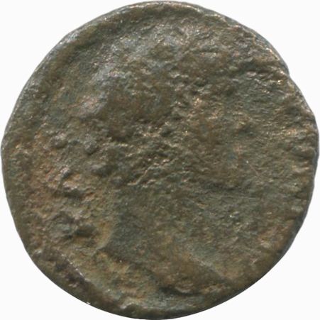 bare head of Marcus Aurelius (short beard), right