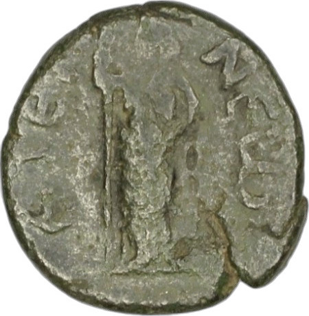 Hera standing, left, holding long sceptre, resting left hand on hip