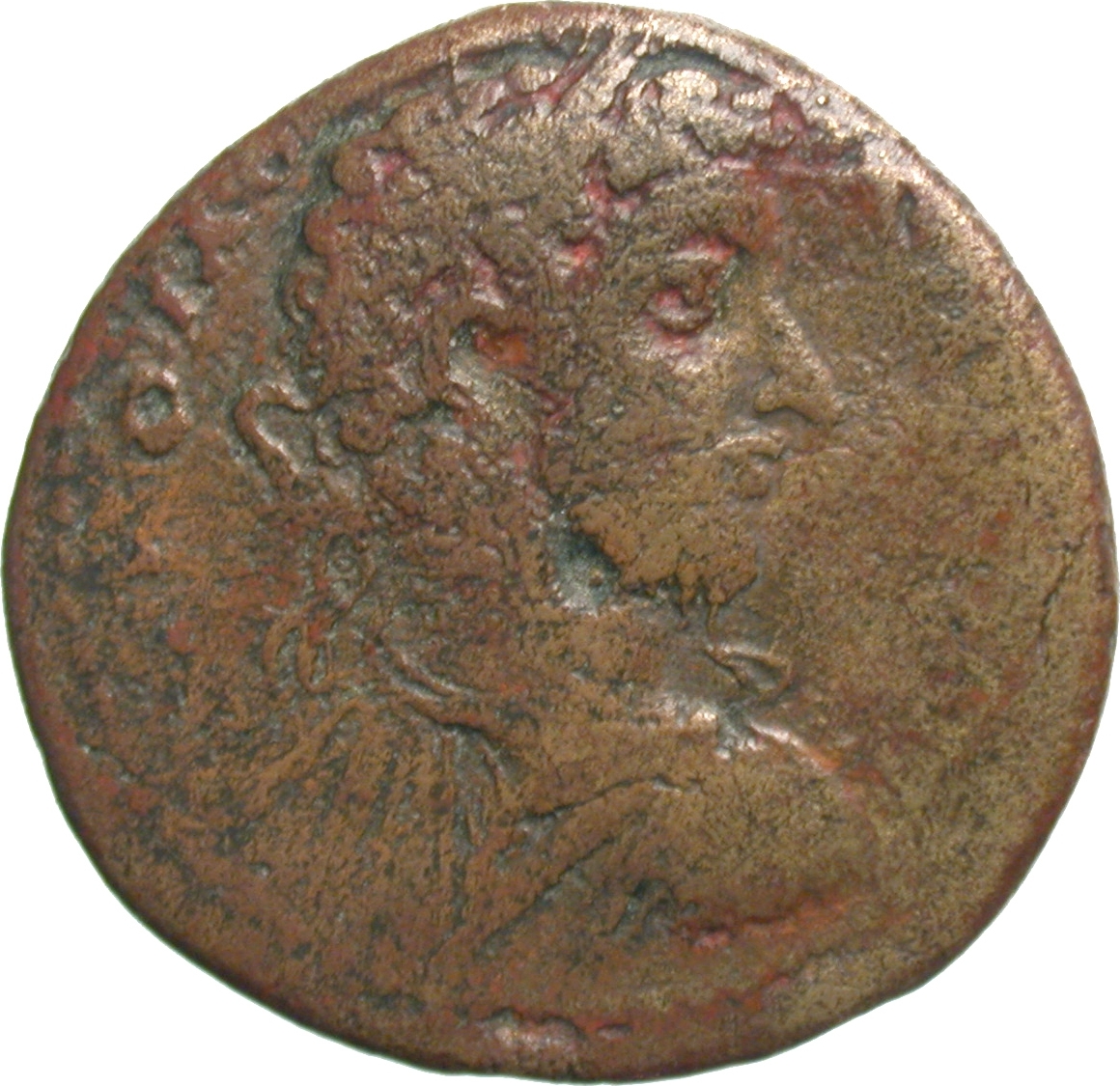 laureate-headed bust of Commodus wearing cuirass and paludamentum, right
