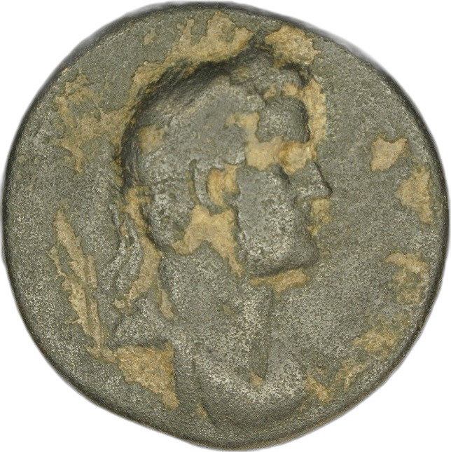 laureate-headed bust of Antoninus Pius wearing paludamentum, right