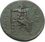 Zeus seated, right, holding long sceptre