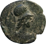 bust of Athena wearing necklace and aegis, right; (in laurel wreath)