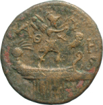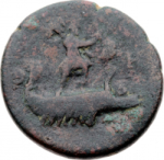 Mu: 196, broken, 7.11g, on prow, head of Athena instead of owl, in water, fish |