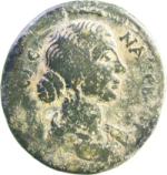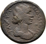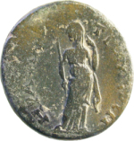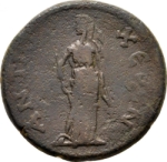 Hera standing, facing, head, left, holding long sceptre in right hand and veil with bent left arm
