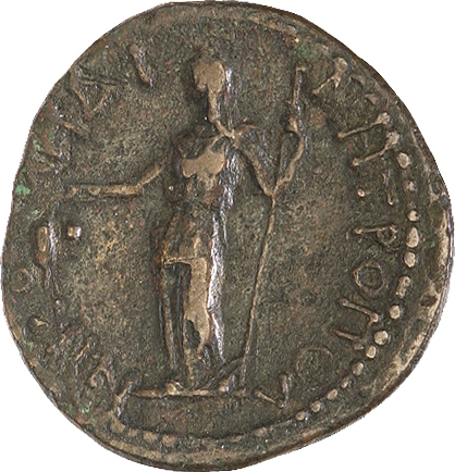 veiled Demeter standing, left, holding two ears of corn and long sceptre
