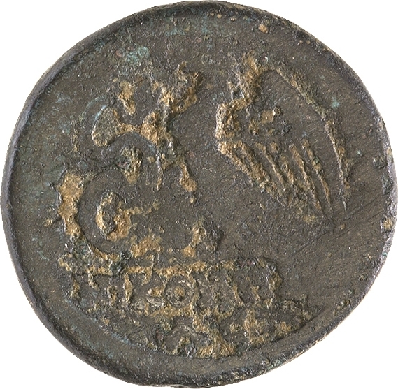 bare(?) head of Marcus Aurelius (short beard), right
