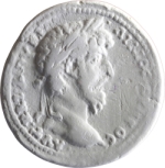temple with four columns enclosing three statues: in centre, radiate Apollo standing, facing, holding raven and branch; to left, Artemis standing, right, with quiver, holding bow; to right, female goddess (Leto?) standing, left, holding patera and sceptre |