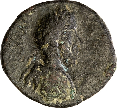 laureate-headed bust of Commodus wearing cuirass and paludamentum, right