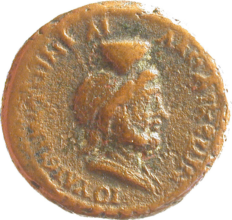 draped bust of Sarapis wearing kalathos, right