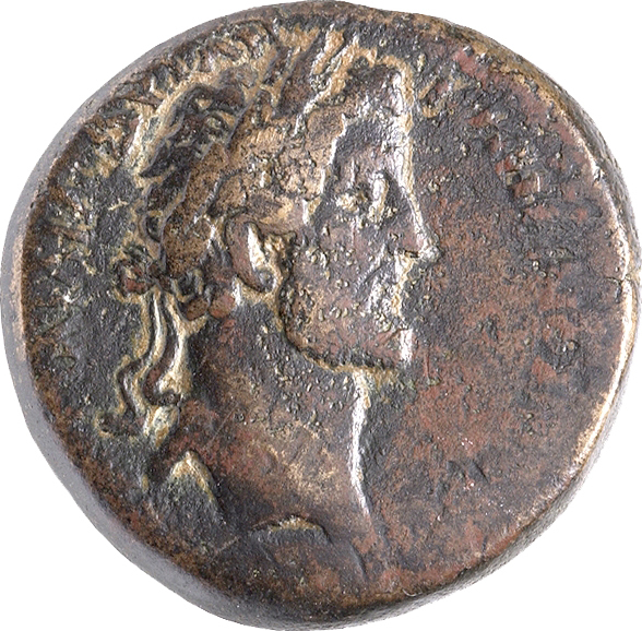 laureate head of Antoninus Pius, right