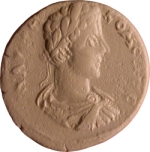 laureate-headed bust of Commodus (youthful) wearing cuirass and paludamentum, right, seen from rear