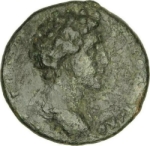 bare head of Marcus Aurelius (lightly bearded), right
