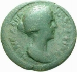 draped bust of Faustina II, right