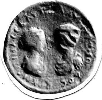 to left, draped bust of Crispina, right; to right, laureate-headed bust of Commodus (youthful) wearing cuirass and paludamentum, left |