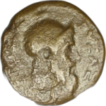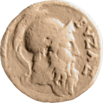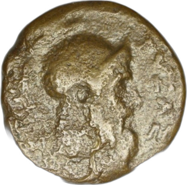 head of Byzas (bearded) wearing helmet, right