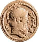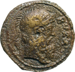 head of Byzas (bearded) wearing helmet, right