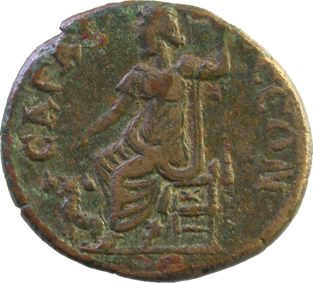 Mu: 7, obverse with traces of drapery, K of obverse legend shaped as E |