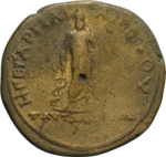 | Reverse design | Asclepius standing, facing, head, left, holding serpent-staff |