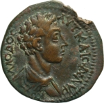 bare-headed bust of Commodus (youthful) wearing paludamentum, right
