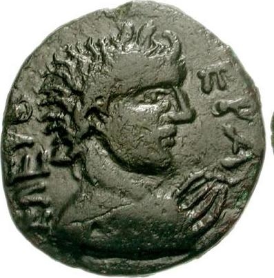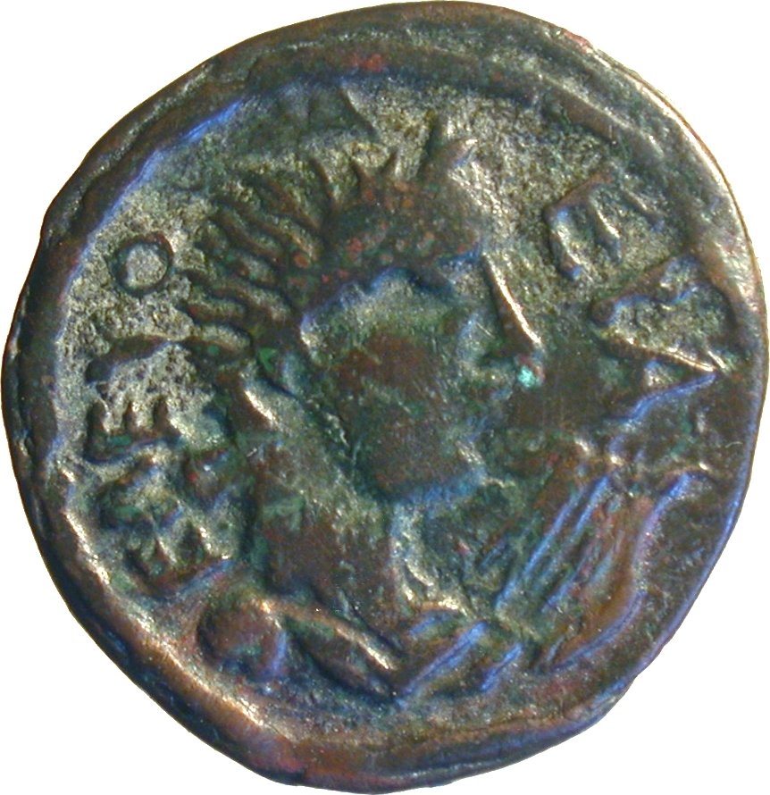 draped bust of Chersonas wearing wreath, right; to right, lyre