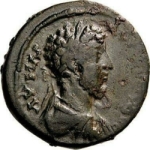 laureate-headed bust of Commodus wearing cuirass and paludamentum, right