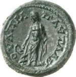 Asclepius (youthful) standing, facing, holding serpent-staff