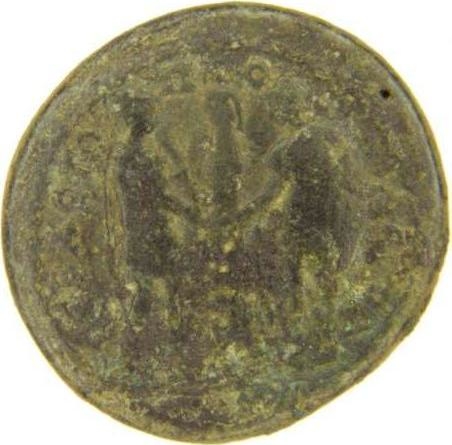 | Reverse design | two helmeted warriors with shields standing, facing each other, clasping hands over eagle with spreading wings which stands on stag, reclining, left; in background between warriors, cult statue of veiled goddess (Artemis?) standing on tall column, facing |