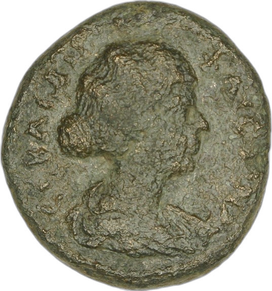 draped bust of Faustina II, right